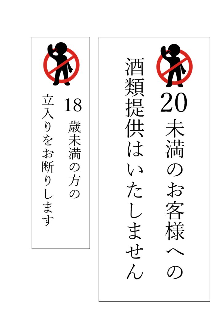 風俗営業者は、営業所の入口に「18歳未満立入禁止」の旨の表示をしなければなりません。なお当事務所では依頼人に社交飲食店用の表示をラミネートしたものを配布している(デザインはページ下部)。